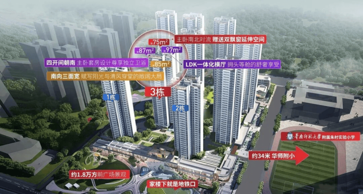 小区自带有约3300方商业街,对面就是广铝四方天地配建的20万方综合商业体(在建中)地铁2站即达增城万达广场、东汇城等商圈。南临约1.8万方前广场景观,家的西面是约22亩社区体育公园。