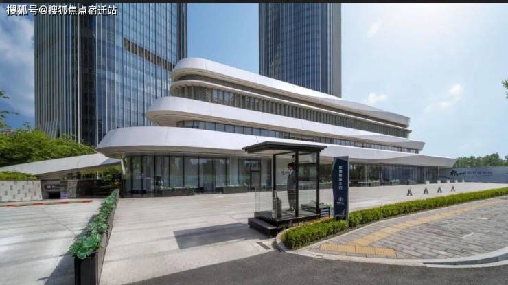 艺术融合,演绎城市美学 智慧之门不仅仅是一座冰冷的建筑,更是一件融合了艺术与文化的杰作。项目邀请了国际知名大师团队 EID ARCH首席建筑师姜平亲自操刀设计,通过双子超塔的建筑形象,将智慧之门以抽象化的形式呈现出来。作为地块南侧城市轴线的终端,双子塔的门户形象与周边城市空间关系紧密呼应,与整体的城市设计相得益彰,成为了城市景观中不可或缺的一部分。 配套副楼作为商业及社区服务场所,其横向的表皮处理仿佛是延绵起伏的江面,给人一种灵动而柔和的视觉感受。