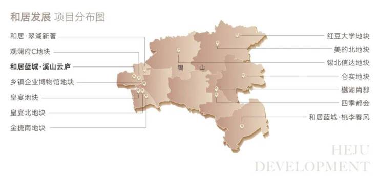 ▶无锡和居投资发展有限公司是锡山区国有企业,隶属于无锡市锡州产城控股集团有限公司,主营房地产项目开发建设。公司深耕锡山,2020年以来已相继布局锡山宛山湖生态科技城、东亭、东北塘、鹅湖、羊尖、东港、云林等板块,目前正同时推进多个高品质项目的开发建设,并不断储备优质项目。未来,公司将为锡山区提升人居环境而不懈努力,通过建设好产品打造好品牌。