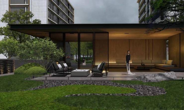 项目案名灵感取自倪瓒名作《溪山图》,借此山水墨画,传递无锡特有的江南风情,与此同时,也将倪瓒先生的士林风骨与审美情趣纳入其中,以一座当代东方人居艺术品,敬献当代无锡士绅雅士。作为无锡第二座云庐系高端作品,项目融合“现代形、东方意”意境审美,以大面积玻璃幕墙直面自然,呈现“云庐系Trees villa”观景立意,其作品在承袭东方人居意境的同时融汇现代建筑美学,采用香槟金色铝板、铝合金窗框、灰色金属漆、仿石一体板等高端建材,以通透艺术的现代建筑,打造区域耀眼的人居美学坐标。