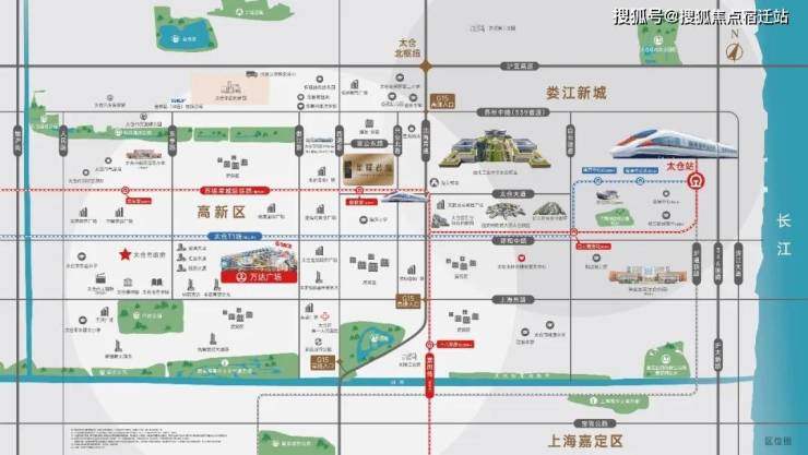 【多维交通】沪太同城一小时,太仓T1线(规划中)、嘉闵线(规划中), 苏锡常城际铁路(规划中)——其中苏锡常城际铁路板桥站(规划中)位于项目南侧, “三纵四横”城市主干道毗邻G15沈海高速、S48沪宜高速及沪宜公路,距太仓新区高速入口直线距离约1.4公里。