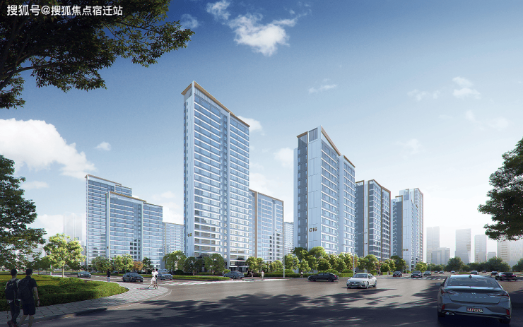 近两年,「公建化」风生水起,无差别的外立面难免让人审美疲劳。和光熙悦以现代简约建筑为蓝本,创新应用葡萄牙米黄搭配轻奢高级米白,以莫兰迪色系的高级调色,楼栋顶部则大胆地采用铝板斜框+格栅造型,未来将是一道优美的天际线。