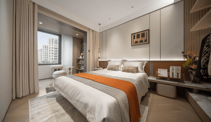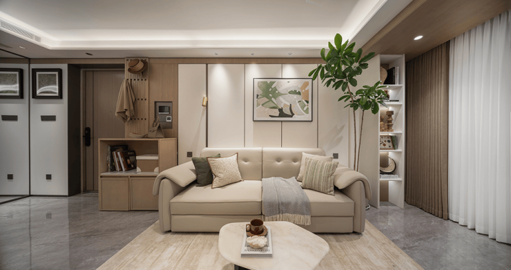 在整体空间设计上,南北通透只是基本,流畅的空间才是进阶,约3.1米面宽的客厅,通过结构优化,实现客厅、阳台连接处无墙垛,空间实用又灵活,闲暇时,一杯咖啡一本好书,或是一部好剧,都让生活足够惬意。