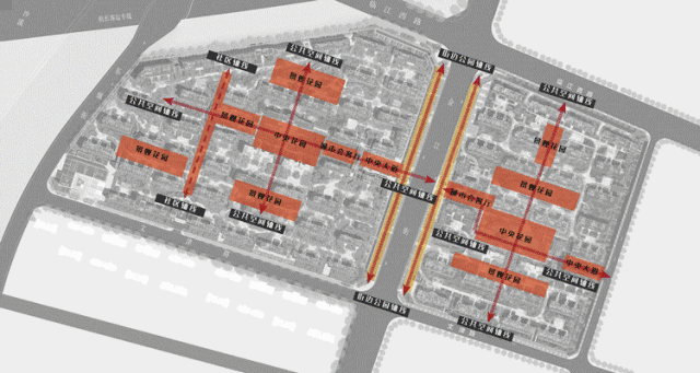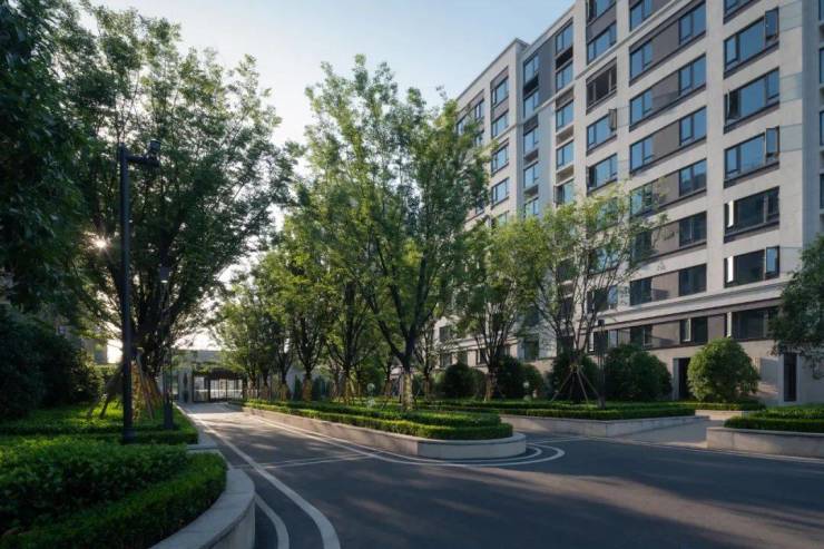 遵循大都会风格的国际化礼遇,我们将轴线的气场设计于入口,为了美化流线的划分,以长达约70米的榉树大道实现人车分流,形成充满仪式感的流线礼遇之外,更重视归家的安全性。