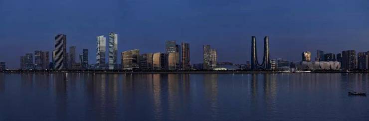 站在一览无余的玻璃窗向外望去,钱江新城的“日月同辉”与市民中心清晰可见,另一侧莲花碗、国博中心亦印刻眼前,一江两岸交相辉映,光芒闪耀。 这片黄金1.8公里江岸线,聚合着时代瞩目的恢弘地标,而IOC则占据着其中最为精华的0.54千米,成就整个奥体乃至杭州难以复刻的C位孤品。
