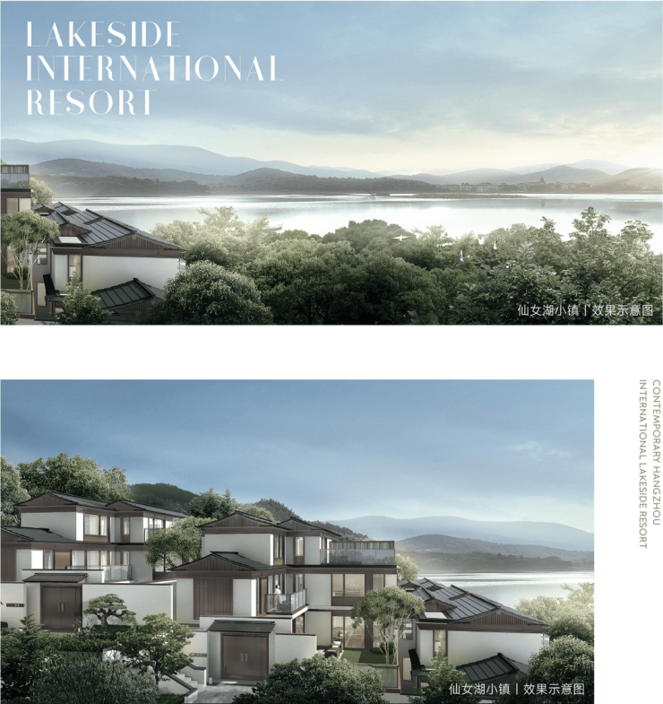 有别于传统中式的冷寂,仙女湖小镇的院墅产品呈现出更为经典的当代感。比如,中式大屋顶抽象为简约轻巧的形态韵味;院墙在保留山地民居情怀的前提下,以石材与玻璃等材质,顺应山势呈现出独特的时代气息;门窗在传统范式基础上,增大了开间尺度,尽可能将阳光与风景迎入室内。