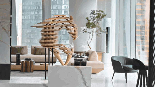 基于人与空间的互动,以及对品味生活的追求、对精神与“唯一性”的重视,通过公区的整体化布局和功能的多元化考量,投射出情境构建下的专属生活方式。商务接待、居家会客、宾客宴请......场景需求融入空间规划,在每个相对独立的体块之间建立出新的关系,又通过空间形态的衍化与连接,蔓延出相互共存的生活场景。