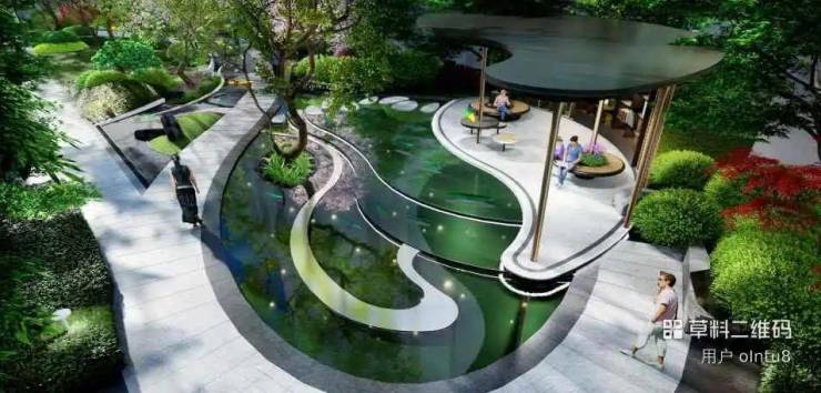 春风绿岸:潺潺水景环绕,户外书吧、中心会客厅