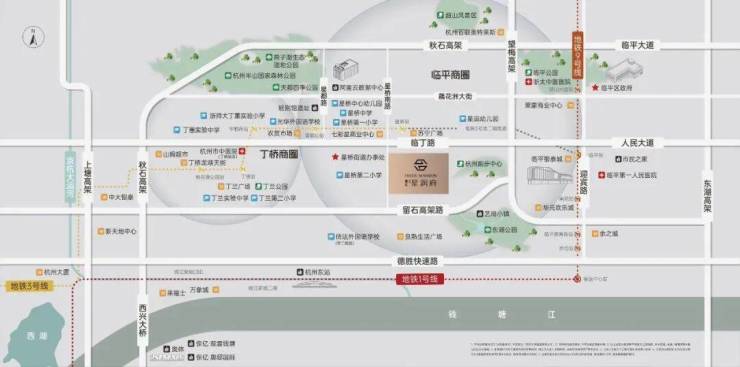 畅享丁桥、临平两大区域商业配套:丁桥龙湖天街、山姆旗舰店、七彩小镇、天都里(在建)、临平银泰城、华元欢乐城、杭州艺尚小镇等繁华环伺。