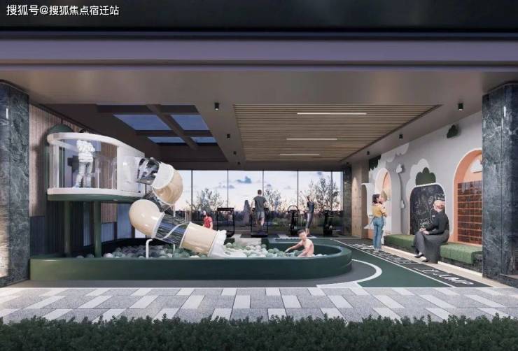 客厅另一侧是全龄化的元气空间,儿童空间围绕沉浸式的亲子互动进行展开,被自然、阳光无限滋养,结合童趣、欢乐的视觉语言进行表达,与孩子一起阅读、绘画、拼搭积木......创造高质量的高频家庭互动。同时,寓教于乐的场景搭建,满足娱乐、美育的多元功能。