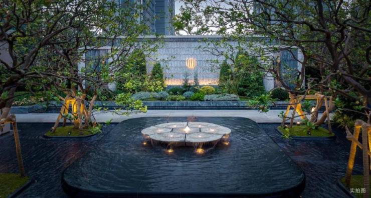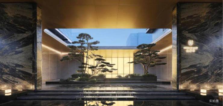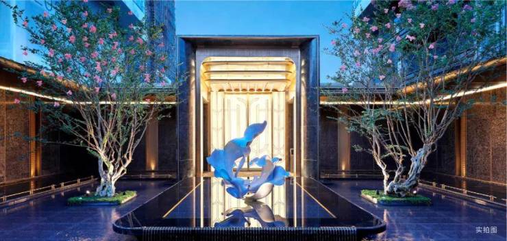 奢贵门庭,定制6瓣百合花雕塑以华贵之姿立于园中;地上归家大堂,百合花艺阵列呈现层叠绽放姿态;地下光厅,融合在地文化及国际酒店设计理念,打造专属归家尊仪。