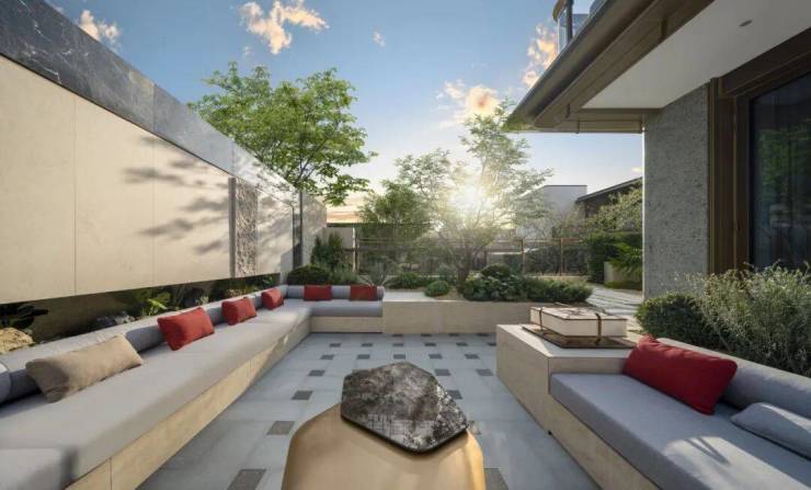低密革命:三层排屋的终极提案“户户大阳台、家家有庭院”的承诺,在建面约215-300㎡的排屋产品中化为现实。边套排屋享约130㎡庭院,创新地下空间挑高约7米,可定制为私家酒窖、星空影院或家族藏品馆。