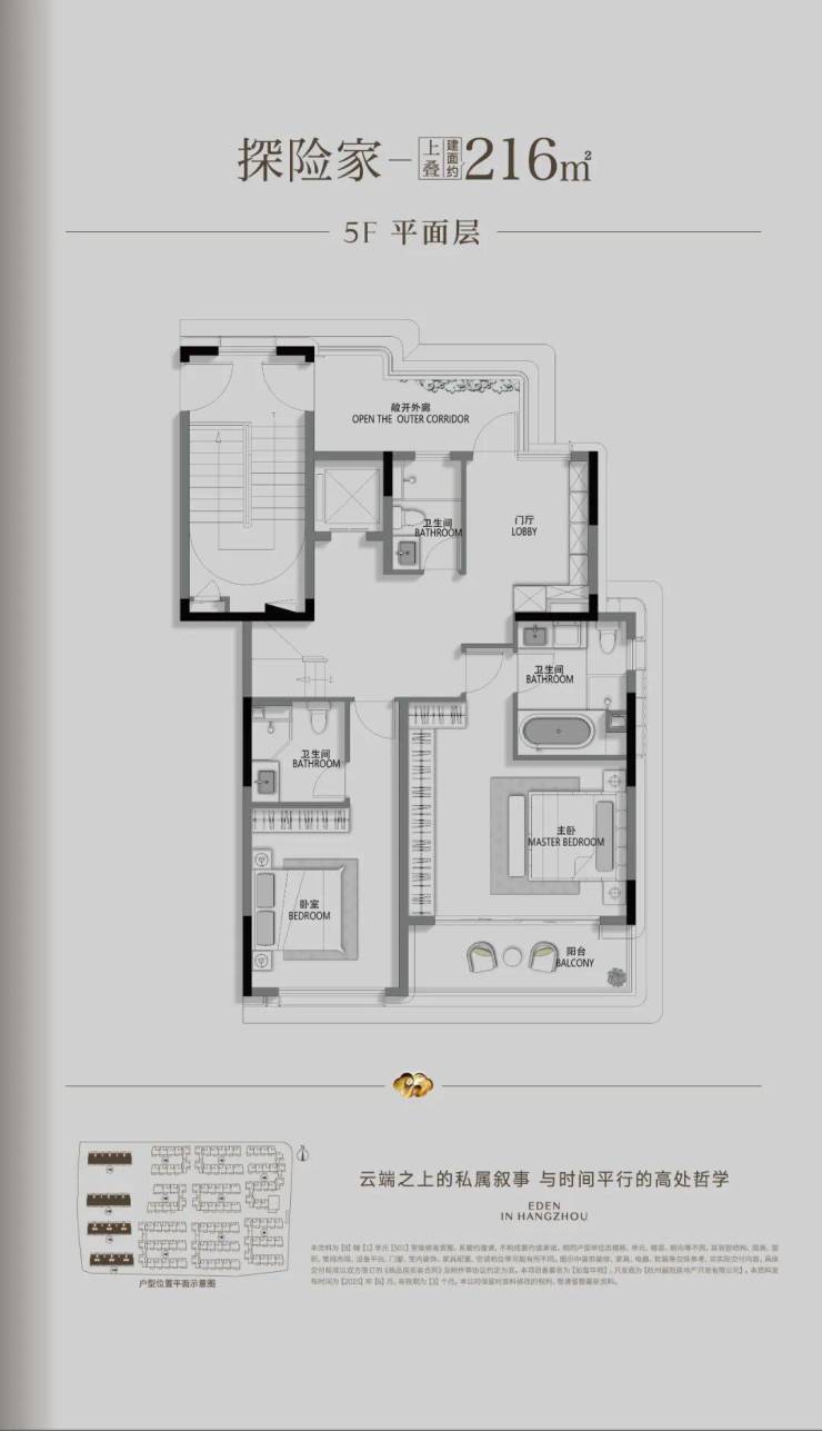 建面约215-300㎡藏品排屋,以地上三层天地院结构,礼遇独门独院。地下室挑高约7米(局部),让景观成为流动的呼吸。主卧奢配南北双露台,顶楼露台为院,时刻上演《罗马假日》的悠闲。