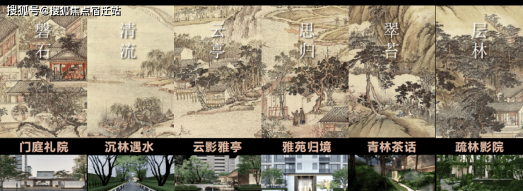 保利·姑苏瑧悦,大区设计灵感起源于《姑苏繁华图》,运用曲直、引隔、围透、藏露等造园手法,在有限空间内实现以小见大、步移景异的游园体验。将六大雅趣生活场景,植入到项目的景观设计中。以苏州古典园林造园手法,结合东方文人雅集,打造当代生活雅集。