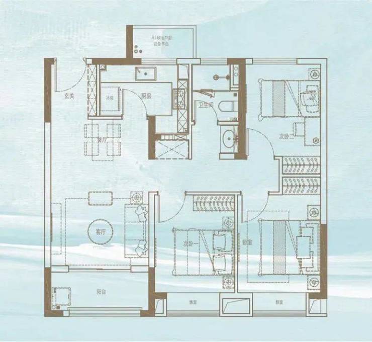 建面约119平三房两厅两卫
