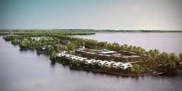 音昱水中天坐落在阳澄湖畔,整个区域就像一座长长的岛,超过一公里的距离,两侧都是湖面,可谓“宛在水中央”,它离城市很近,却又好像很远,明明20分钟之外的世界是喧闹与嘈杂,这里却一派空灵姿态。其实,距离苏州最繁华的园区就20分钟车程,离上海也不过一小时。