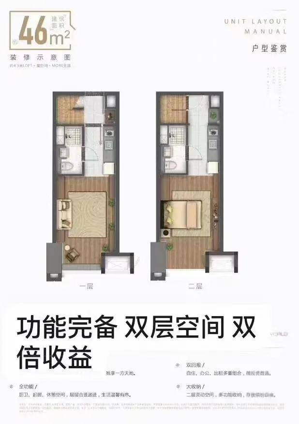 约4.5米挑高,买一得二,一层投入,双倍享受,绝版双钥匙,一层自住,一层出租,灵动空间随心创享,即买即入住,美好无需等待。