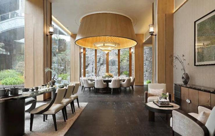 咏月望庐更强调“在地文化”与“当代精神”的共鸣,以“月”为魂、以“潮”为脉,构建六重情绪归家动线,同时运用名贵石材、全冠名木、艺术雕塑等收藏级元素,在细节中呈现庐系前所未有的艺术价值与自然张力。