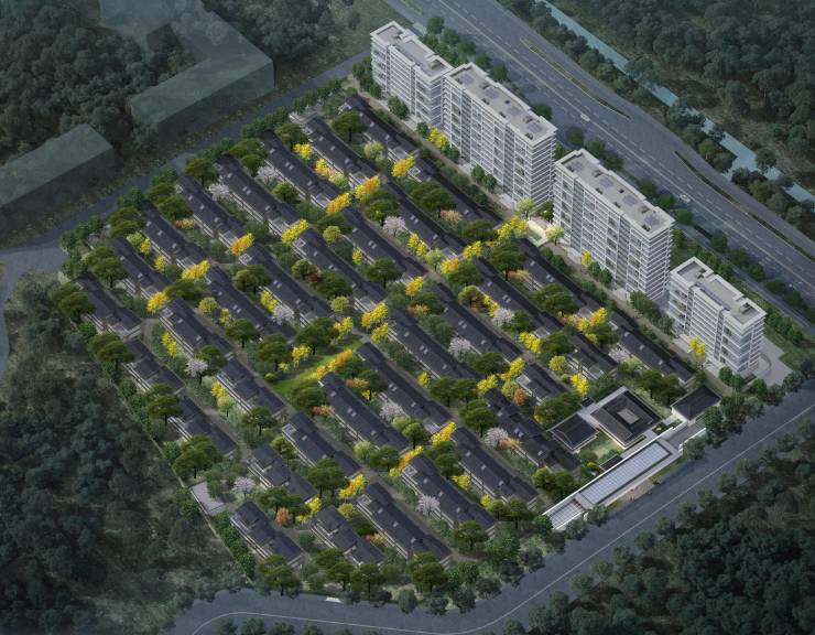 建面约219-391㎡联排别墅,新中式立面以灰白石材为骨,飞檐化入山脊轮廓。挑高阔厅,前庭后院,以“院藏山水、宅纳乾坤”致敬东方世家风范。