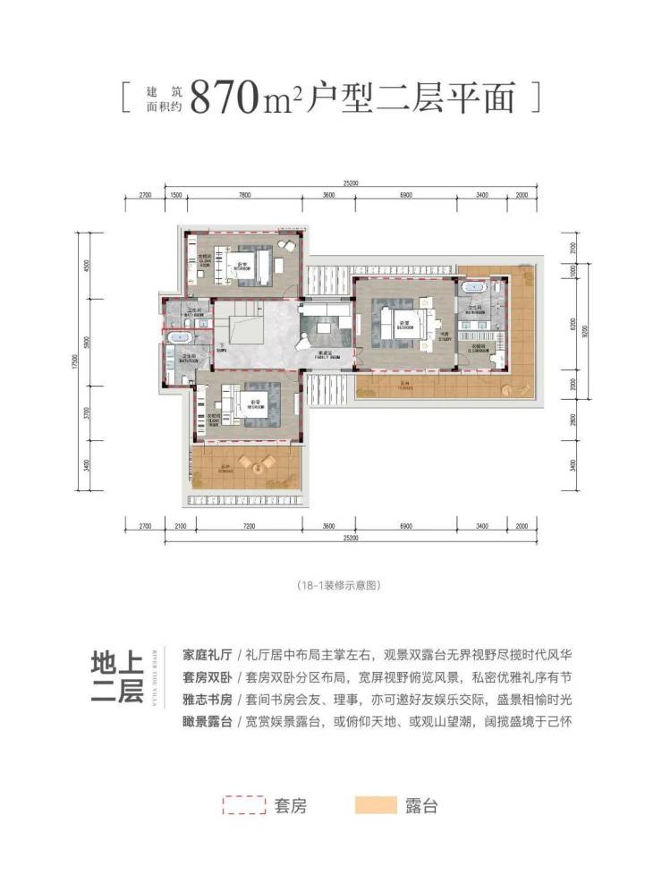 建面约87 0㎡地上二层户型图