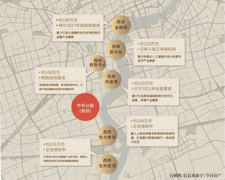 上海沿江而兴,地产开发沿江由北向南辐射发展。
