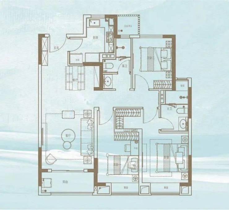 建面约142平四房两厅两卫