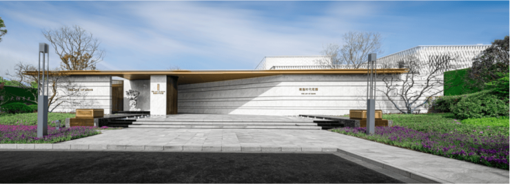 1、化繁为简、奢制现代风尚 :外立面提取抽象的“山墙”符号,实现苏式元素与现代设计手法的完美结合,并采用金属漆一体板,配以高级灰高质感色彩。
