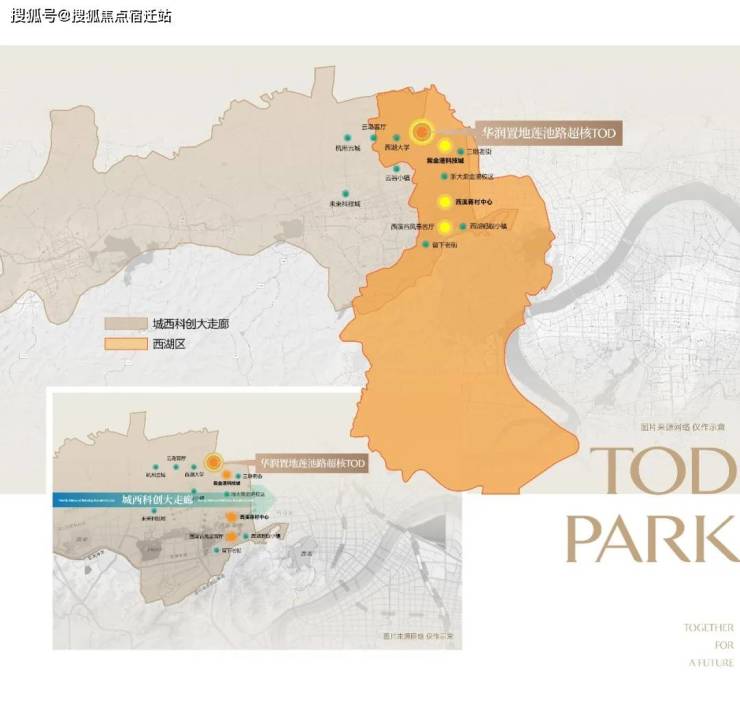莲池路超核TOD—润启未来之城立于西湖新中心之上,完美承接西湖区“稀缺自然人文资源 + 顶级城市配套 + 塔尖教育资源”,同时接轨城西科创大走廊“世界级产业集群”的强大引擎动能价值,共同构成了“宜居+宜业”价值高地。