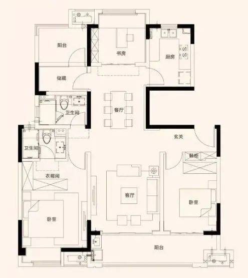 建面约125㎡三房两厅三卫
