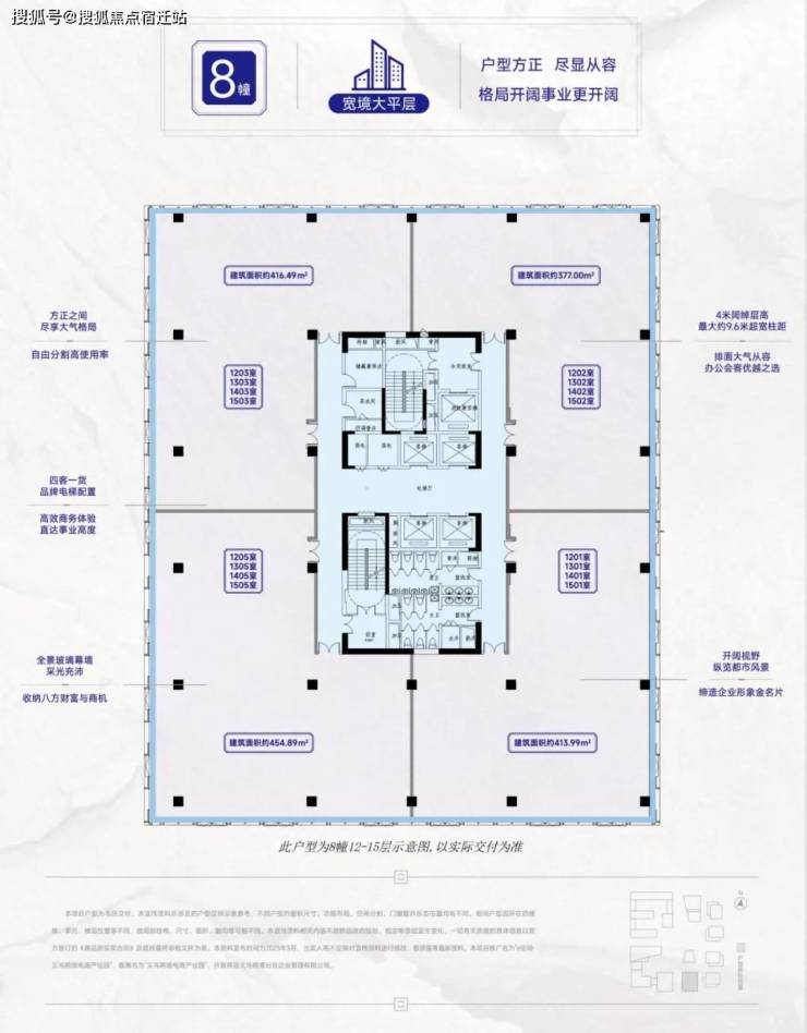 【外 立 面】:写字楼为全景Low-E玻璃、铝板幕墙