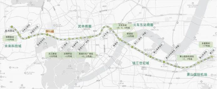 交通中心:机场快线西溪湿地北站上盖物业,文一、文二西路等多条城市主干道环伺。其中,机场轨道快线,串联三大站点,全日运营长达20小时!120公里/小时,全程45分钟。链接起了杭州三大交通枢纽:杭州西站、杭州东站、萧山机场;同时串起了杭州最高端的商务区,从西溪CBD到武林CBD、再到钱江新城CBD、奥体,成为杭州创新、创业人口流动的城市主动脉,实现了杭州三大枢纽的半小时交通圈。