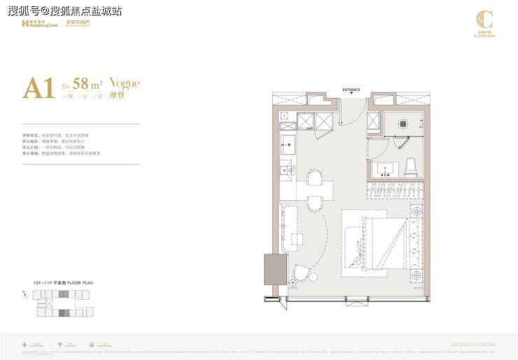 A户型:45㎡-58㎡单身套房;