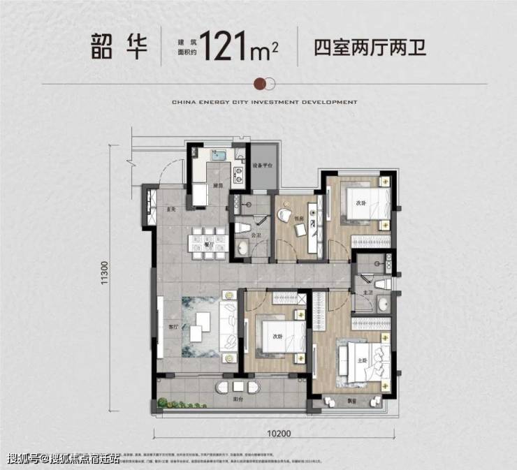 建面约121方:四房两厅两卫资金更宽裕的客户,可以选择建面约121方四房改善户型。“韶华”121方户型南向面宽长达约10.2米,入户带嵌入式独立玄关位置,U型厨房朝向餐厅,动线更加舒适。这款户型动静分区,非常适合进阶改善,四口之家、三代同堂家庭居住。