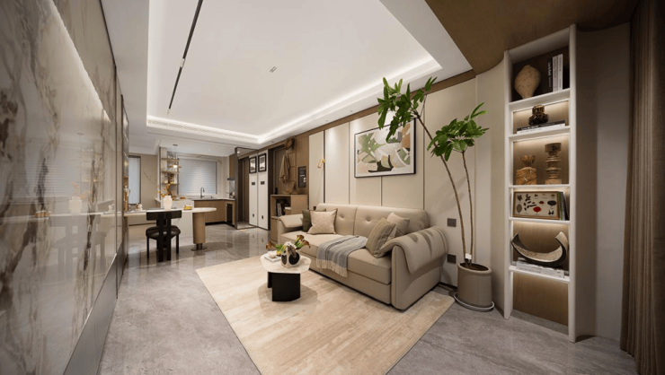 在整体空间设计上,南北通透只是基本,流畅的空间才是进阶,约3.1米面宽的客厅,通过结构优化,实现客厅、阳台连接处无墙垛,空间实用又灵活,闲暇时,一杯咖啡一本好书,或是一部好剧,都让生活足够惬意。