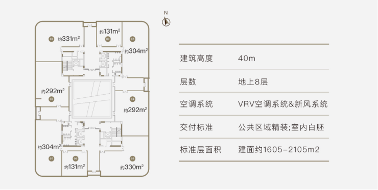1)仅8层围合式建筑,还原商务生活质感;