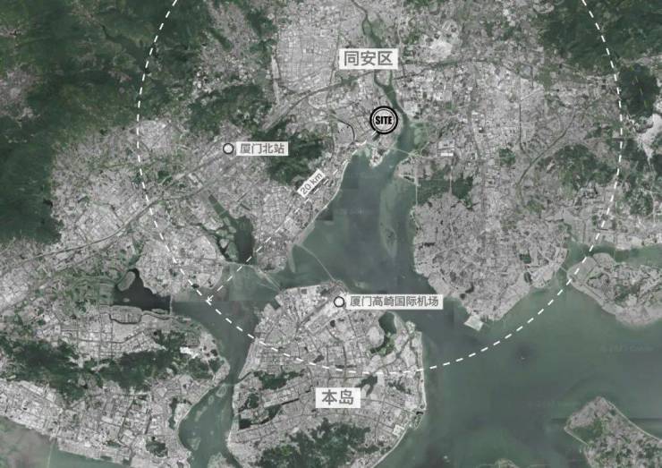 项目位于厦门市同安片区南部,南临同安湾对望本岛,北接产业园带,处于厦门岛内外一体化发展的主战场,距离厦门本岛20km,距厦门北站、厦门站、高崎机场等主要海陆空交通枢纽站均在20 公里范围内,行车40 分钟以内基本都能到达。