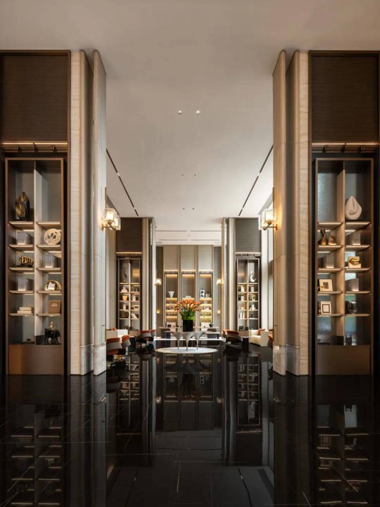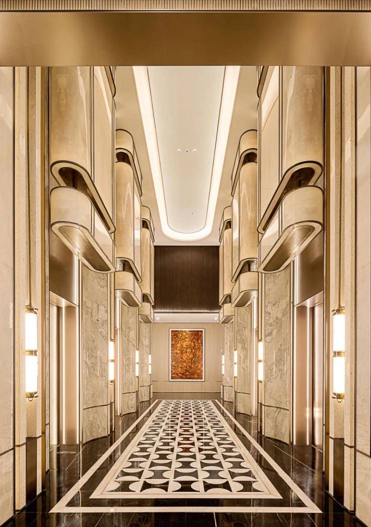 珍贵石材、名贵木料、定制金属,国际一线品牌,匠心雕琢臻于至善,汇聚全球高端品质,为业主献上“私人订制化”的理想生活,营造穿越未来的经典审美品位。地下大堂同样低调奢华,从地面墙面的铺装,到顶部对称造型的吊顶,世纪国泰中心在细节上毫不敷衍,让宾至如归的仪式感,贯穿所有的归家动线。
