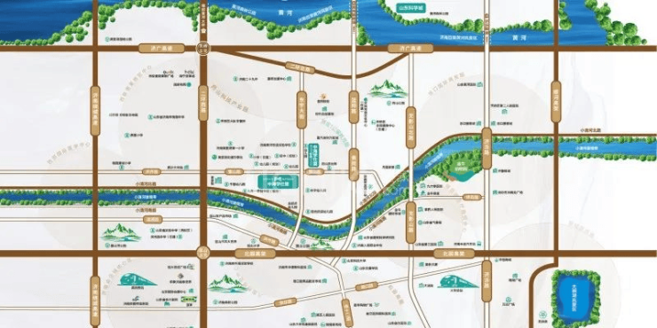 2 .交通:项目紧邻二环西路路轴与小清河水轴,向北串联新旧动能转换区,向南连接主城区;紧邻片区内主要交通干道东宇大街、粟山路、新沙北路,门口有5条公交线路,交通便利。