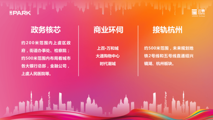 云泰PARK是浙江省六个千亿项目、上虞五个一批项目,由绍兴本土企业锦泽地产开发, 公司成立于2004年,是一家以城市基建、房地产开发,商业经营管理为主营业务的多元化新型企业;