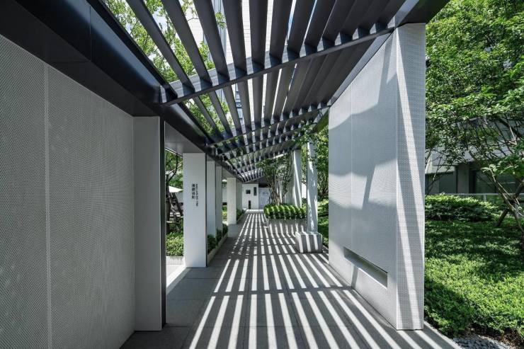 通过格栅、镂空的凉亭和微退台打造