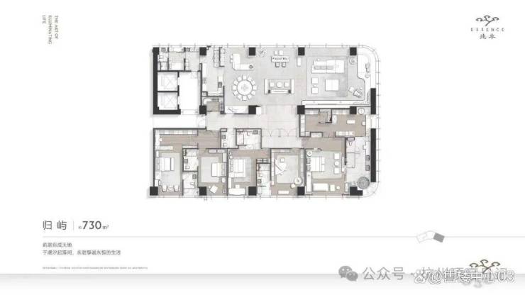 当踏入兆丰Essence的那一刻起,您将被一种难以言喻的奢华所包围。560-730㎡(以730㎡展示区为例进行阐述)三款户型,每一款都是对生活美学的极致探索。特别是那建面约730㎡的展示区,由春山秋水匠心设计,仿佛步入了一个梦幻般的艺术殿堂。