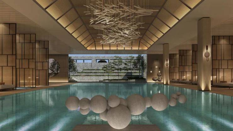 更巧的是,湖山天境的园林设计师,正是操刀西子湖四季酒店的宋淑华。甚至园区内同样有国际五星级酒店:湖山天境和伦敦百年酒店集团朗廷合作,引入它旗下的高奢品牌康得思酒店。酒店规划有米其林餐厅、健身房和恒温泳池等配套,相当于为业主内置了一个“超级会所”