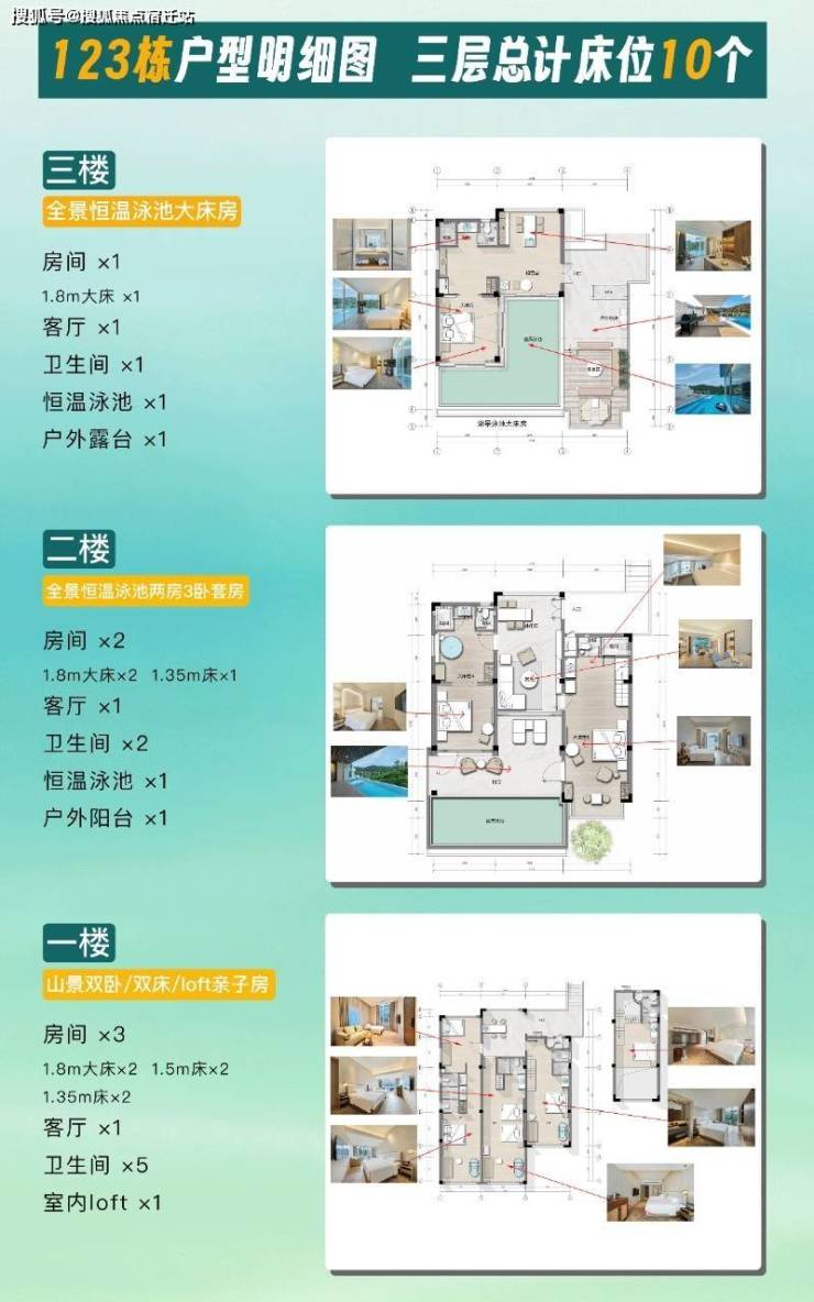 内部配套及景点:山顶树屋(度假村旅游目的地)、悬空泳池、爱心泳池、白色沙滩、玻璃栈道、高尔夫推杆、水上教堂、停机坪、高空瀑布、林中茶会。208个户外泳池(恒温服务),其中度假村巨资打造的悬空高度达33米的户外玻璃泳池是亚洲首创,徜徉其间的你可以体会到在山谷上方飞翔的感觉,悬空泳池的下方是酒吧和棋牌房,适合举办泳池派对,私人酒会等活动,此外,悬泳度假村还设有山林越野车、湖畔烧烤吧、岩壁瀑降、山林高尔夫挥杆练习场、野趣垂钓、水上桨板、水上婚礼舞台等新颖高端的设施配套。与户外生活方式多样性的结合。