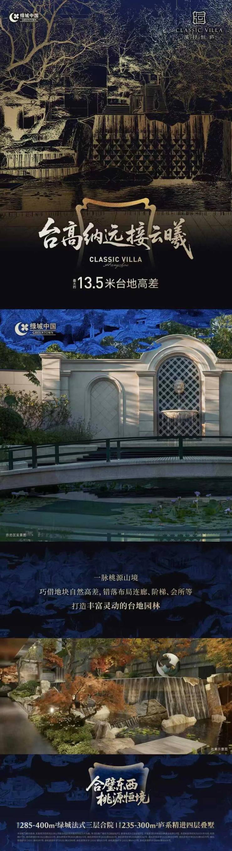 --- 产品美学革命 ▍法式合院|香奈儿老佛爷别墅灵感 - 经典法式形制 + 当代超大窗墙比 - 定制立面石材 · 南法浪漫情调再生 ▍庐系叠墅|现代东方意境革新 - 咏溪云庐设计语言升级 · 水平飞檐勾勒天际线 - 轻盈玻璃幕墙 · 光影通透生活剧场 ▍大师天团联袂 九米建筑 × GTS蓝颂景观 × CCD室内 × 孙建亚私宅设计