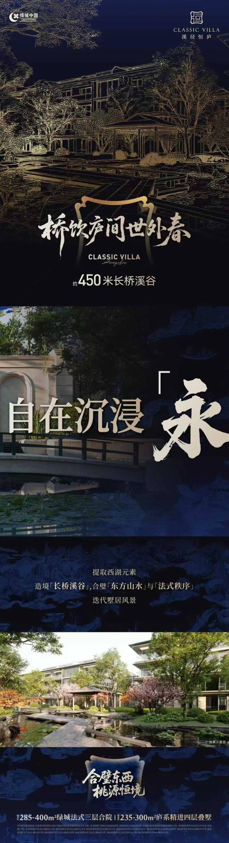 - 绿城·溪径恒庐 2025绿城「恒庐系」开卷巨著 · 1.01容积率封藏孤本 📍 桃花源畔 · 29幢法式合院+29幢庐系叠墅 · 20000㎡实景示范区盛放 --- 核心参数|十年杭州低密之巅 | 指标 | 详情 | |--------------|--------------------------| | 容积率 | 1.01(2015-2025杭州最低,不含四县) | | 占地面积 | 约9.95万㎡(150亩纯粹墅境) | | 产品规划 | 29幢3F法式合院 + 29幢4F庐系叠墅 | | 户型面积 | 合院285-400㎡ · 叠墅235-300㎡ | | 地段坐标 | 余杭街道·运溪快速路绿地闲沈路口 | | 开发商 | 绿城中国