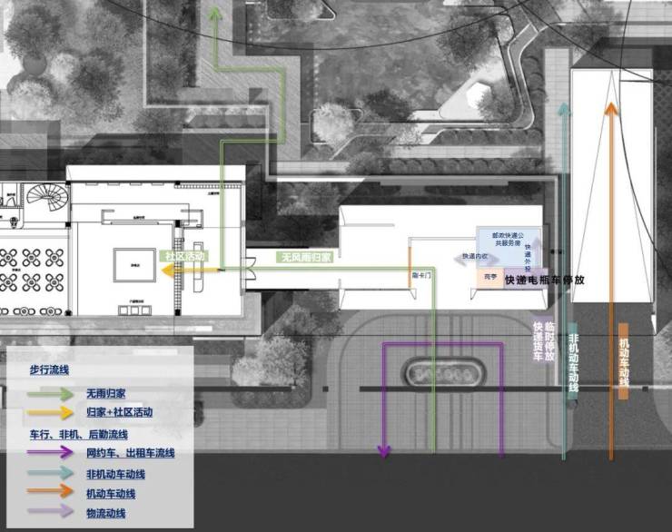 【科学流线】各类动线互不干扰,分别设置出入口,避免社区大堂人员混杂,提升社区堂客厅品质