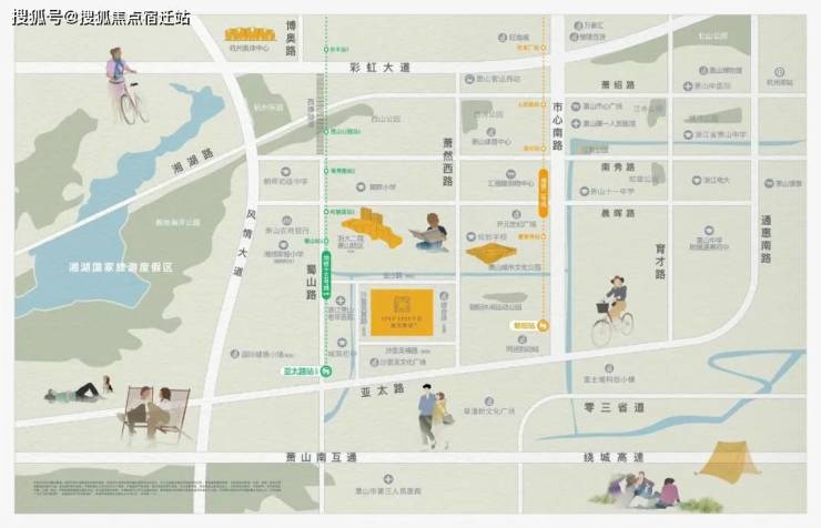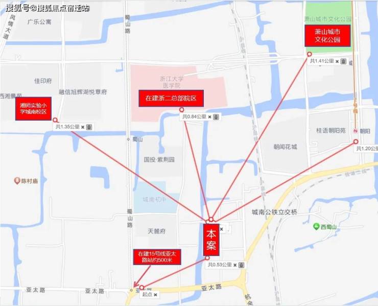 7大城市公园环绕,其中构建“五馆合一”的萧山城市文化公园约2公里,附近还有湘湖风景区。