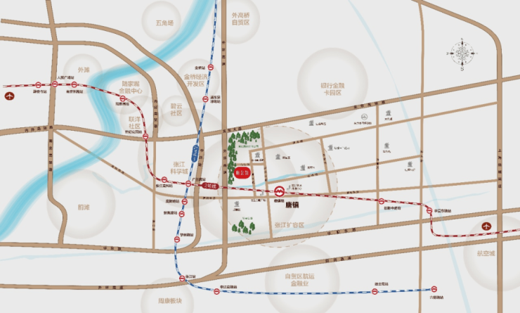 【商业方面】:以庞大的商业体量、丰富的功能业态、精致的街区体验,为社区,提供烟火气和人情味,构筑家门口的全能商圈。咫尺纵享唐镇地铁站上盖综合体阳光天地、恒生万鹂商业广场、荣融生活广场、天之骄子生活广场、高科商业广场、长泰广场等都会商业资源。