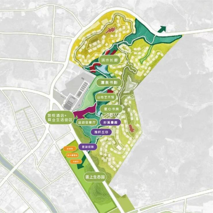 【复合业态】运动会客厅、全球奢华酒店—凯悦、商业街区、浮光图书馆、山地艺术馆、雲上生态园