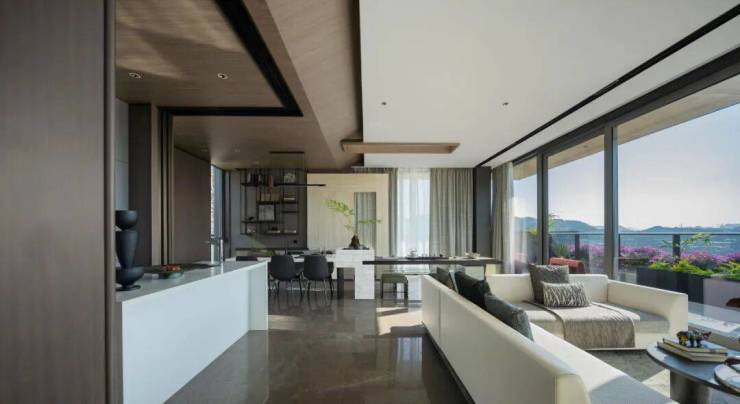 建筑涵盖类独栋、双拼、三联排等型制,汲取东方风骨,以玻璃为主材,让建筑消隐于自然,获得沉浸式体验。